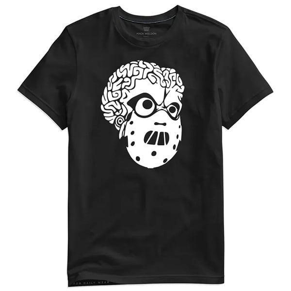 Single color graphic print - white ink on a black t-shirt - featuring the D. Lector BARtian (The Martian) logo